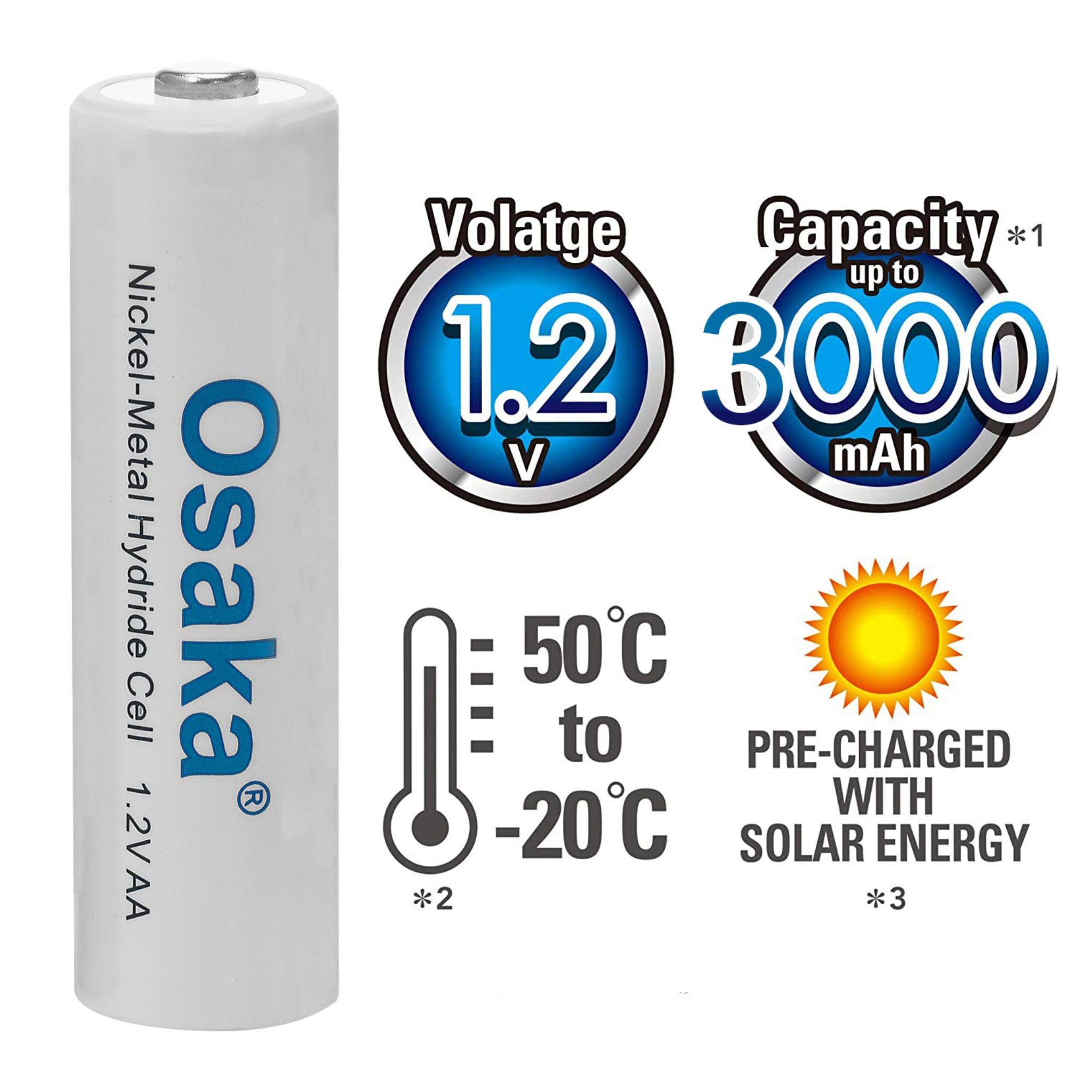 - Contents: Osaka Charger OSK-C903W – 1 Nos; AA 3000 Ni-MH rechargeable batteries – 8 Nos.